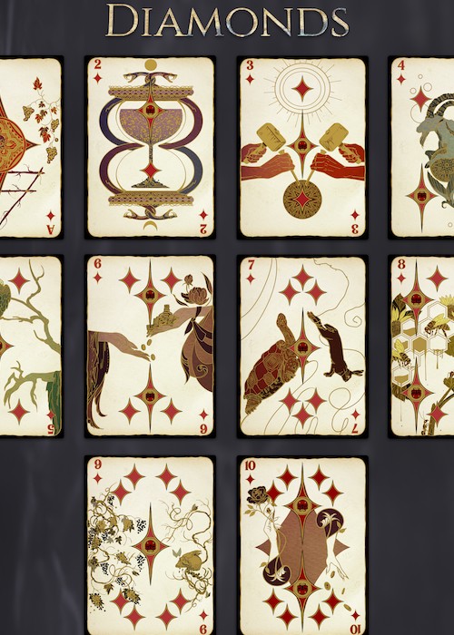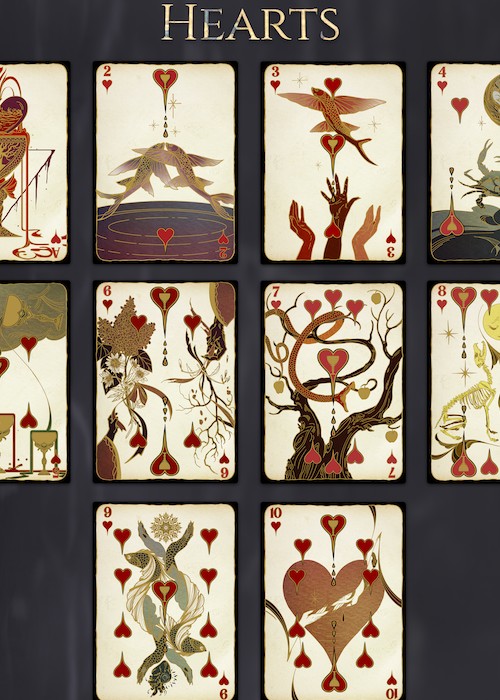 The core version of the deck, the Twilight Edition features 54 stunningly illustrated cards (including two Joker cards), printed on slimline paper stock with linen finish. Each and every card in the deck features gilded edges and gold-foiled illustrations playing against a warm, ivory background. The art is alluring and mysterious, yet still includes the classic numbering and iconography instantly familiar to all. This makes the deck truly unique, and ideal for collecting, play, divination or personal meditation. The Twilight Edition comes packaged in a paired tuck box.