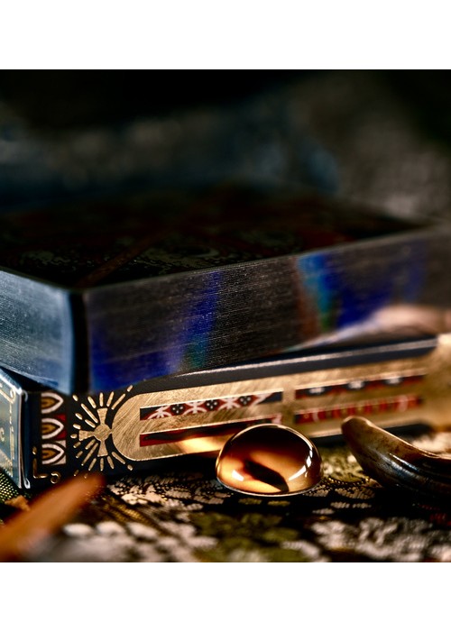 For this exclusive Patreon Edition, the deck comes with a paper band that marks it as coming from JBP’s Patreon and the year of release. The black colored box comes with textured silver foil. The cards are gilded with black holographic foil.