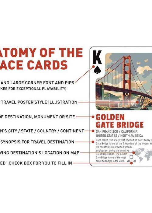 Travel the World Playing Cards is a deck designed as a pocket-sized travel companion that shows the variety of places to visit around the globe. Each card features a destination: the vintage style poster of the place, the location of it, a short synopsis about the place, the dotted location on the map, and a FILL ME checkbox which you can tick IF you have visited the place. The illustrations are done using AI (Midjourney), which Randy then adjusted and polished the illustrations with Photoshop, and then layout the cards – hence, still made by human with help by technology. The Back Design features a bordered illustration. The deck can be used for casual gameplay, OR as your travel checklist if you are a globetrotter.