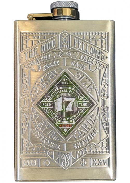Father Firkin features green color scheme of the back design. The cards are gilded with Wasabi Green foil. The hip flask case is made of stainless steel with pale brass finish.