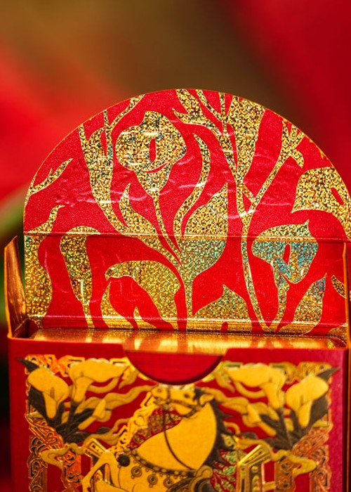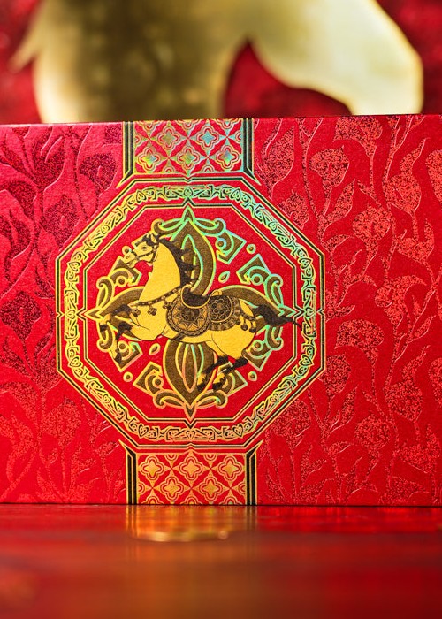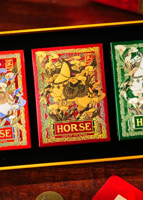 The card backs are enhanced with a luxurious cold-foil technique, making the horse appear to leap forward, mane flowing and strides vigorous, embodying the Year of the Horse’s spirit of progress and auspicious meaning.