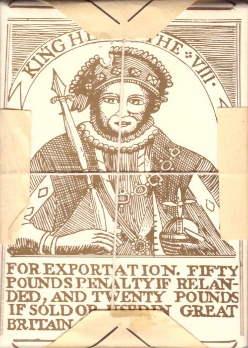 18th-century playing cards feature Aesop’s Fables. Based on a deck printed by I. Kirk ca 1759. The deck is wrapped in paper which shows a crude image of Henry the VIII and reads For Exportation. Fifty pounds penalty if relanded, and twenty pounds if sold or used in Great Britain.. Each card has a title, with six-line poems (four lines dedicated to the fable and two to the moral), a picture, and a playing card face printed on uncoated heavy card stock, cut with square corners, and has no design on the back.