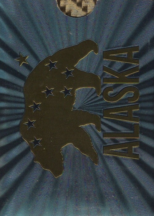 Plastic gold plated souvenir playing cards. Designed in Alaska, printed in China by AceUsa.