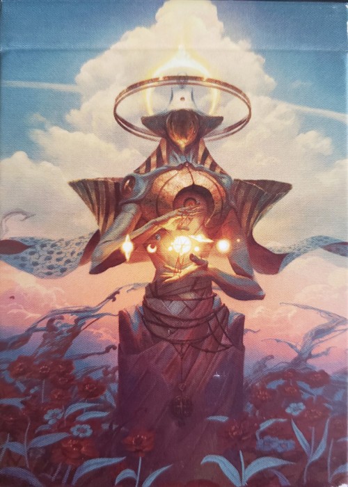 Deck of cards featuring the gorgeous artwork from Peter Mohrbacher’s Angelarium project. These are not playing cards; instead, there is a finished art piece of an angel on the front side of the card (including its name and title), while there is a text description or poem on the back side of the card. The deck is currently not available on the online store, but can be found at Angelarium’s convention appearances, including Gen Con. Angelarium website: https://www.angelarium.net/