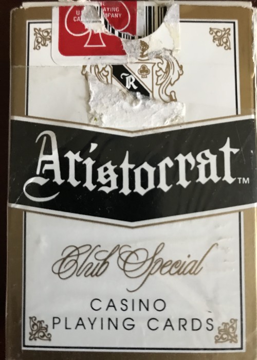 Rio Casino Deck, Robin bule color of back, Rio logo on corners (2) of the face cards and 10 on every suit, Bule and purple face cards and showgirl wearing a hat with pineapple and an Ace of Spades on the hat too, The girl wears a dress. 2019 is manufacture year.