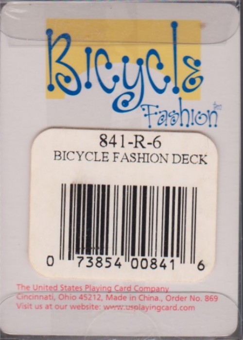 Bicycle cards made in China inside a clear plastic tuck.