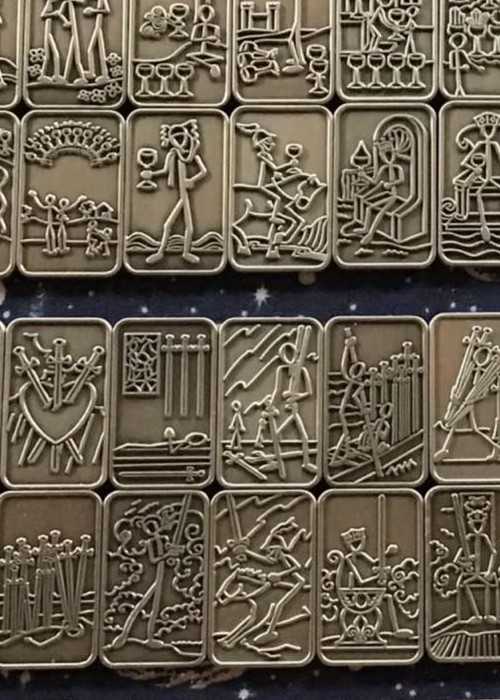 The CharmCast Tarot is a tiny, simple, doodle-based replication of the traditional Rider-Waite Smith tarot, and cast in tin-plated iron. They are meant to last a lifetime. Each charm is iron with an antiqued tin plating, and approximately 18mm x 31mm x 1.2mm in size. Don’t let dexterity issues keep you from the tarot.