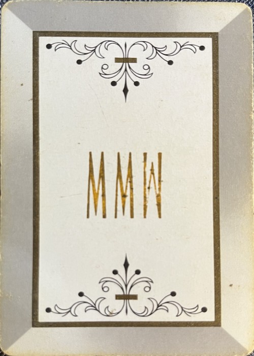 An elegant double deck of monogram cards. The gold shimmer box has an ESE monogram but the two decks inside have an MWW (or MMW depending on which way you look at it) on the black and white backs