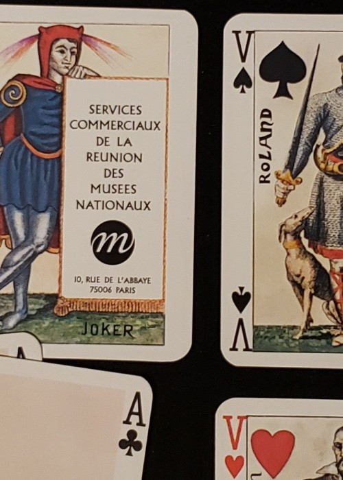 This set, an original of which is in the prints room of the National Library, was published in 1816. Its history is described on an imprint of the mold: composed by Gustave Housbigant following a bet with friends that he would make them play with cards other than those used and that everyone found hideous…
