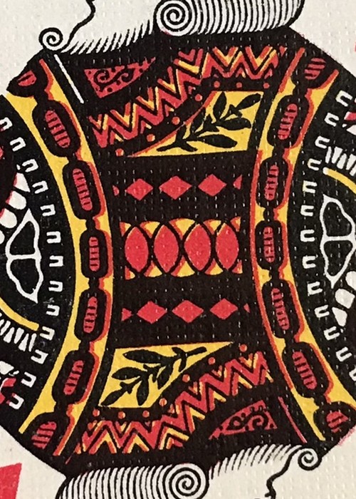 Old round deck, approximately from the 1950’s, featuring a cameo for a Greek or Dutch girl.