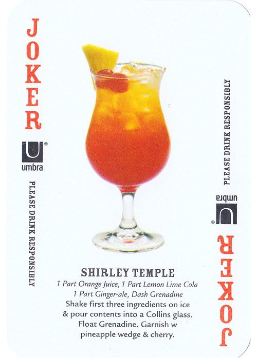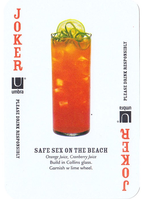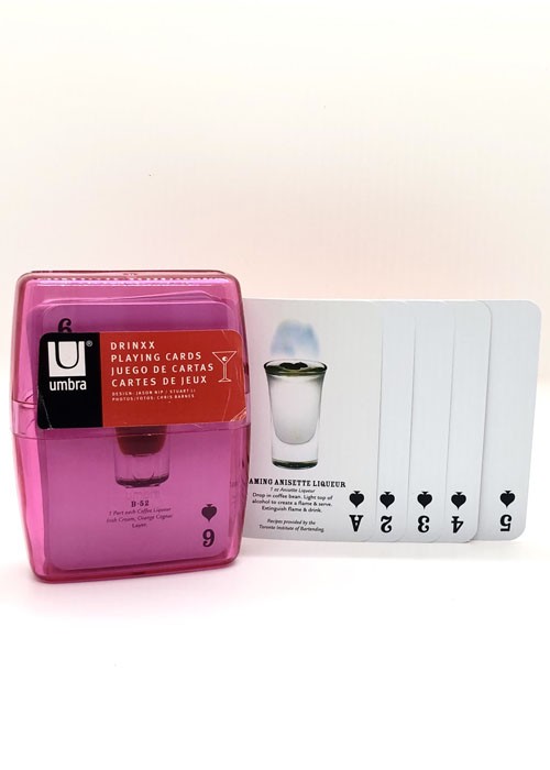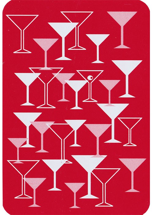 No copyright dates are provided. Recipes are provided by the Toronto School of Bartending. Card size is 2 3/8 x 3.5 (6cm x 9cm). The cases come in multiple colours but it seems the cards are the same (red backs with white martini glasses) in every case.