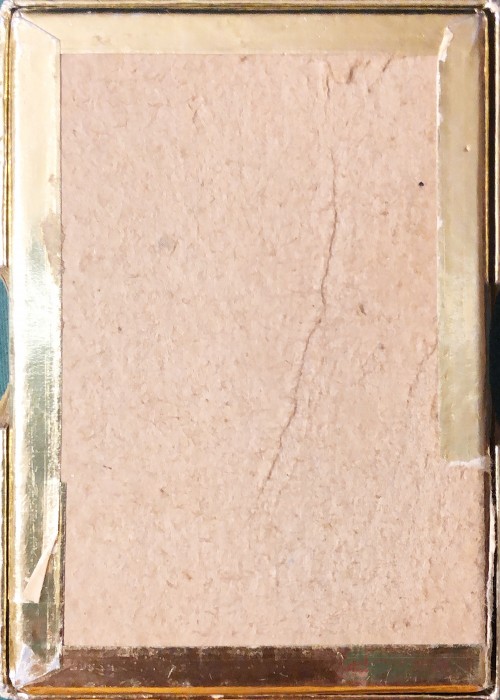 Standard bridge-sized deck of cards with a stylised large-headed girl holding a large daisy bigger than her head, standing amongst proportional daisies on a turquoise background. The style would suggest the 1960s or 1970s, although there is no date. The box contains no title. They are Duratone plastic cards from Aarco in a Metallic gold and fuzzy-flocked box. The backs are one-way as in the photo of the box. The jokers are different with one in black and white, the other the same picture with some red and yellow.