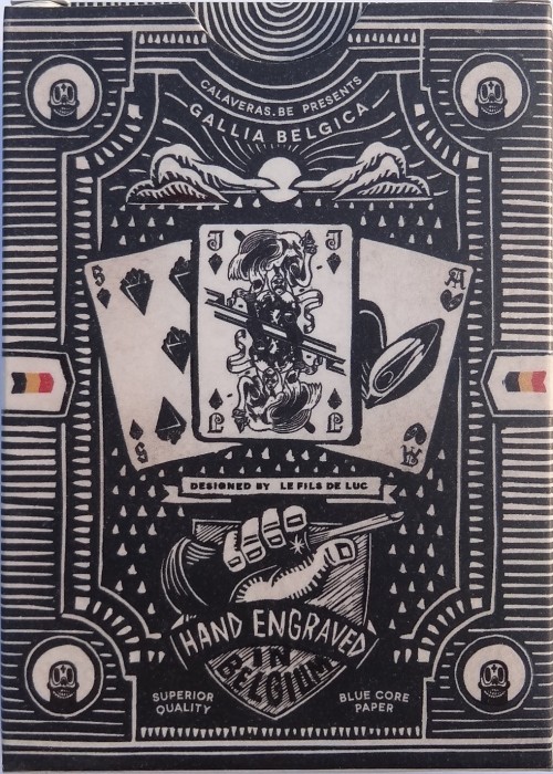 Cédric Volon, a Belgian-Mexican artist, created this deck that celebrates Belgian culture. It is fully custom and even the pips are replaced by iconic Belgian things. For example the diamonds are replaced by chips (french fries) and instead of the clubs the cards feature the iconic Atomium. An add card explains the different courts and the identical jokers feature the world famous Manneken Pis.