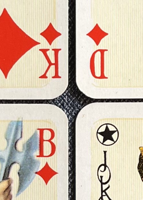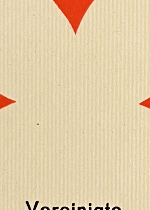 A reproduction of an 18th century German deck of playing cards. The 7OH has a logo with a heart and ASS on it. The 7OD has “Vereinigte Altenburger und Stralsunder Spielkarten – Fabriken A.-G. Stuttgart-S. A small ticket is included.