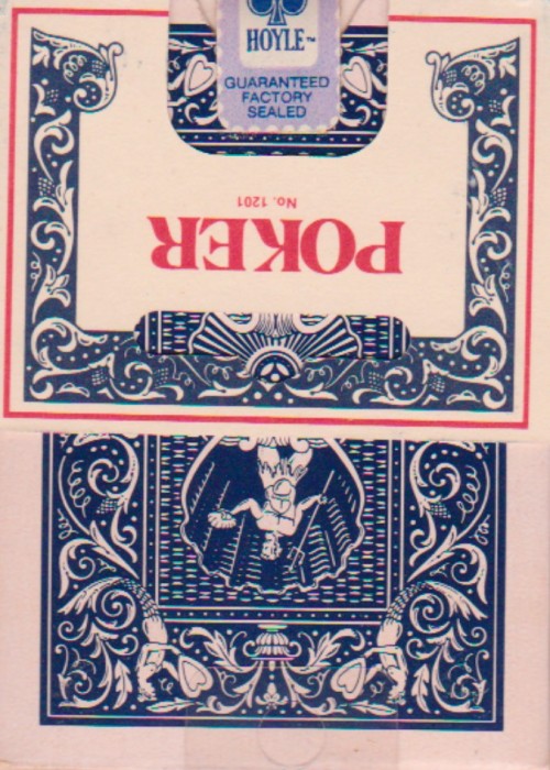 Vintage red, no barcode. Small Hoyle seal. Cardboard flap to hang Side says Stancraft Products. Bottom says Nevada Finish