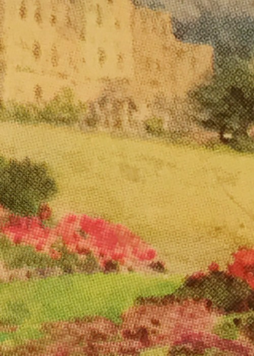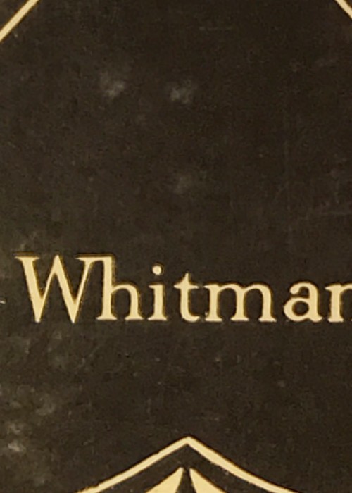 Old pinochle deck made by Whitman. Old cardboard matchbox style box. Landscape painting with a White House.