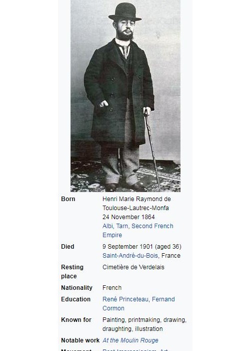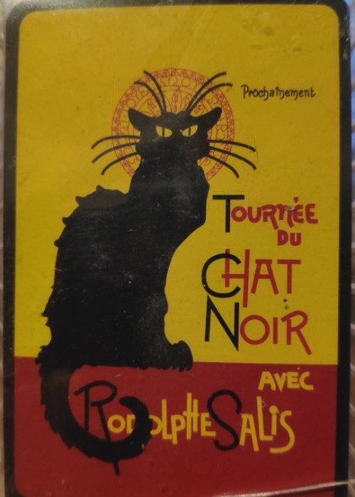 This is a deck of French playing cards from Paris based on a print of the famous artist/ poster artist – Toulouse Loutrec. The graphics on this deck of cards are in the French style. Physically unable to participate in many activities enjoyed by boys his age, Toulouse-Lautrec immersed himself in art. He became an important Post-Impressionist painter, art nouveau illustrator and lithographer. Through his works, he recorded many details of the late-19th-century bohemian lifestyle in Paris. Le Chat Noir (French pronunciation for The Black Cat was a nineteenth-century entertainment establishment in the bohemian Montmartre district of Paris. It was opened on 18 November 1881 at 84 Boulevard de Rochechouart by the impresario Rodolphe Salis, and closed in 1897 not long after Salis’ death. Le Chat Noir is thought to be the first modern cabaret: a nightclub where the patrons sat at tables and drank alcoholic beverages while being entertained by a variety show on stage. The acts were introduced by a master of ceremonies who interacted with well-known patrons at the tables. Its imitators have included cabarets from St. Petersburg (Stray Dog Café) to Barcelona (Els Quatre Gats) to London’s Cave of the Golden Calf.