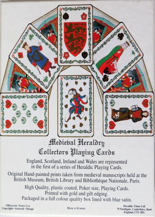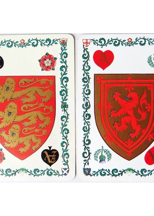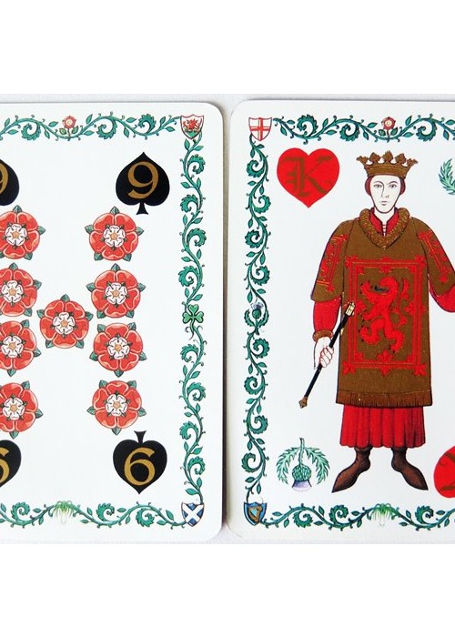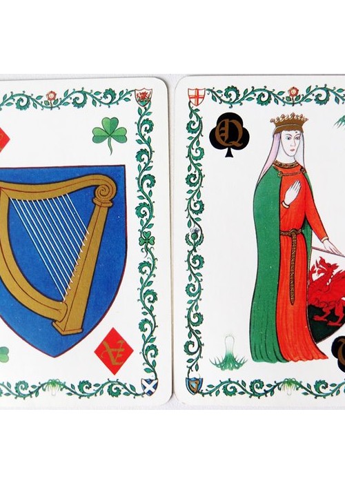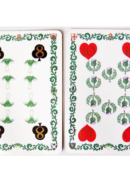 Suits are Clubs/Leeks (for Wales), Spades/Roses (for England), Diamonds/Shamrocks (for Ireland), and Hearts/Thistles (for Scotland).
