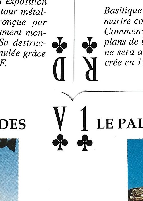 Higher quality tourist souvenir deck. Features 52 card deck, 2 jokers, 1 bridge scoring card. Jokers feature a shield, Courts and aces features 16 photos of Paris.