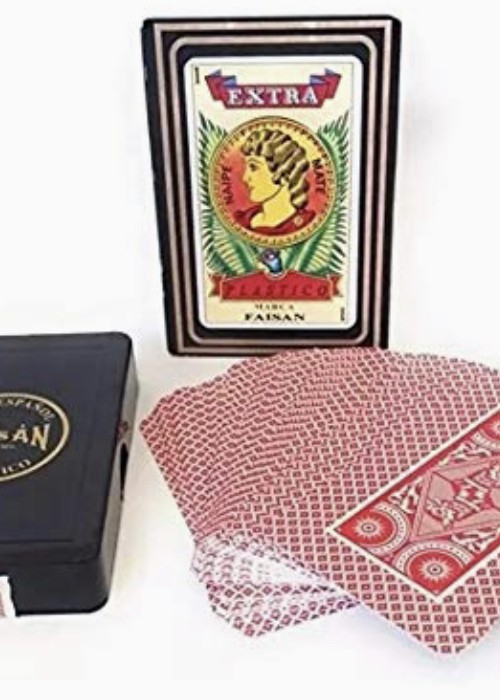 Orden es de 1 baraja de 40 cartas. Naipes Faisán Español 100% PLÁSTICO. Una de las marcas de baraja de mas alta calidad disponible. Calidad exportación, Impresas sobre Plástico grabado importado. Empacadas en estuche individual de plastico negro grabado y fajilla, con 40 cartas . Reversos rojos y azules. Hechas en Mexico.