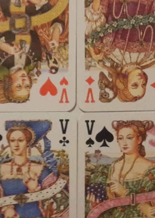 This bridge sized Dutch deck has been printed since 1984 by Cartamundi. The deck was designed by Hanz Reizinger. The custom court cards have traditional Dutch indices and deck comes with 3 identical Jokers.