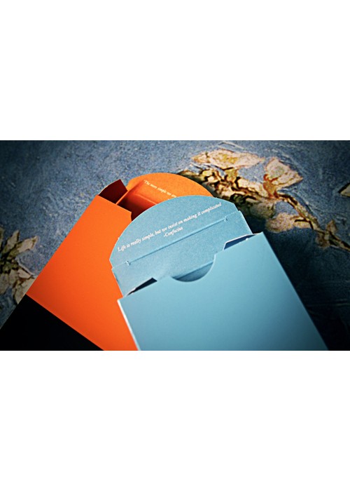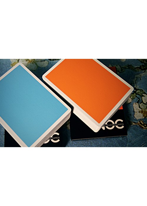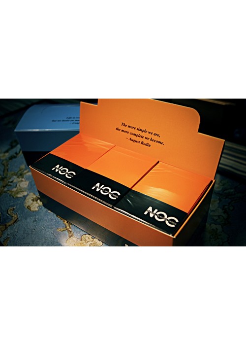 Bold, Simple, and Elegant. Perfect for Summer Fun Summer is a time for fun and freedom. Whether you\’re getting together with the guys for poker night or performing magic for strangers on the beach, it\’s a perfect time for a fresh pack of cards! The Summer NOC deck shares the strikingly simple design and thin Bordereds as the NOC v2 deck, now in vibrant Orange and Light Blue colors. Custom Tuck, Ace, and Jokers The custom box matches the minimalism of the cards and carries an inspirational quote about the art and philosophy of keeping your mind, body, soul, and possessions free from clutter and distraction. The Ace of Spades and Jokers also carry a minimalistic yet attractive design. The court cards have been simplified and carry a color scheme that reflects the core NOC lineup. The v2 are similar to the v1s and are regular decks with white minimal playing cards instead of coloured. Along with the regular red, yellow, green, blue, and purple they have also made a black (which has a white tuck) and a orange and light blue summer variants.