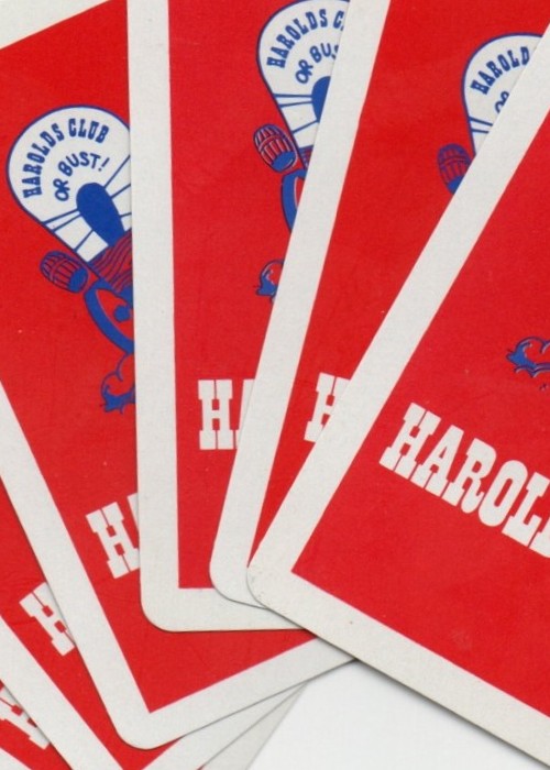 Pre 1995 Harold’s Club, also spelled Harolds Club, was a casino in Downtown Reno, Nevada that was established in 1935. The casino closed in 1995 and the building was demolished in 1999. Harold’s Club casino was established in 1935 by Harold S. Smith Sr. (1910-1985) and his brother, Raymond A. Smith. Soon afterwards, their father, Raymond I. (Pappy) Smith (1887-1967), was appointed general manager and became the public face of the casino. The casino expanded by buying adjacent Virginia Street properties. Harold’s Club constructed a seven-story building as part of the casino, but never had a hotel on the property. Pappy Smith developed a marketing campaign that made the casino famous, using more than two thousand billboards across the United States advertising Harold’s Club or Bust, often written on a Conestoga wagon.(By the 1970s, most of the billboards had been taken down because of the Highway Beautification Act.) Harold’s Club was sold to Howard Hughes’ Summa Corporation in 1970 for $11.5 million. In December 1994, the casino was sold to Gamma International Ltd. and closed three months later. The casino was then sold to Harrah’s Reno in 1999 and demolished. The property is now an outdoor plaza for concerts and special events. The casino building had an American Bandstand restaurant and nightclub for 8 years during the 1990s. Harold’s Club was the target of a casino heist in the 1955 feature film 5 Against the House. A large 70 by 35 foot mural of Old West pioneer settlers that was displayed in front of the casino is now on display at the Reno Livestock Events Center, about 2 miles from the old casino location. The mural was designed by Theodore McFallon and constructed by Sargent Claude Johnson.