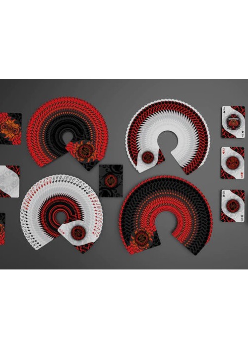 PRO XCM – A FIRST IN MODERN DECK DESIGN – In 2012 De’vo launched the world’s first deck created specifically for modern card manipulation – entitled Dominion- from his PRO XCM (Xtreme Card Manipulation) Series. The Artwork was done in collaboration with Professor D.W. Pheylx Hopkins. Here De’vo introduced his twin tip mirror back concept, where you can get two different colored fans depending on how you fan them and you can shuffle them normally unlike traditional fanning decks. This deck sold out and went on to win several awards! IF you can find them on ebay they can cost up to 20 times the original price! De’vo’s concepts have since been copied and used by most all modern day manipulation decks. Last year De’vo introduced his Master Series, which is a series of both new and classic decks reborn in luxury inks with dual foil boxes.