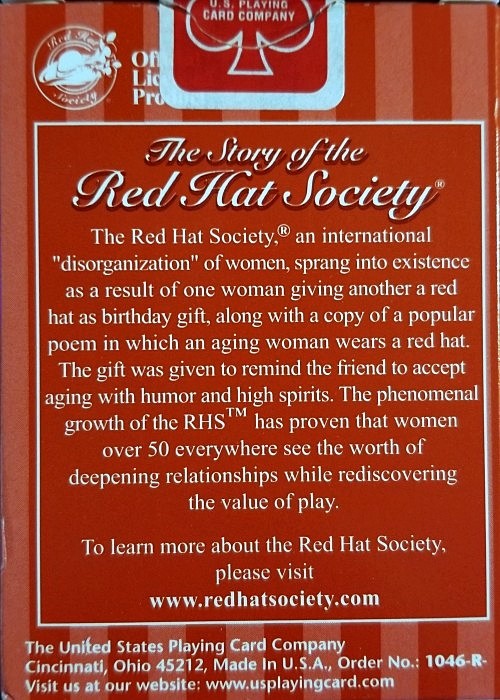A custom deck commissioned by The Red Hat Society. Printed by USPCC