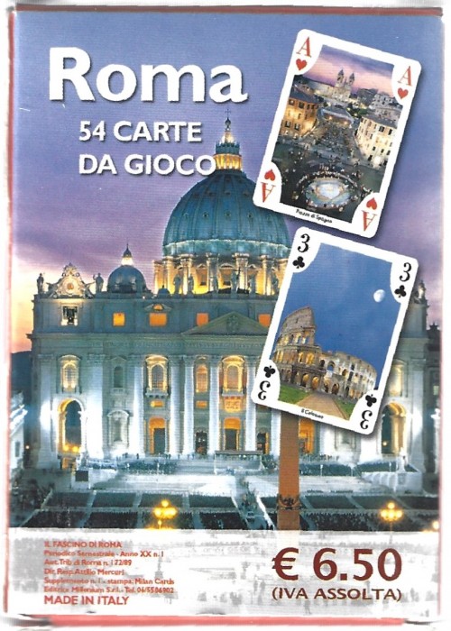 Standard tourist type 54 card deck, including two jokers. 54 different images across the deck. Made in Italy. High glossy finish. Cards measure 63 mm x 88 mm. Bright colourful clear photographs with titles on each card.
