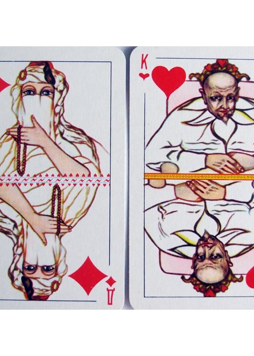 Playing cards showing the influence of ‘Jugendstil’ first manufactured by the Soviet Playing Card Monopoly (U.S.S.R.) in c.1910 and then again in c.1930. This pack is a modern reprint, circa 1980, with 32 cards.