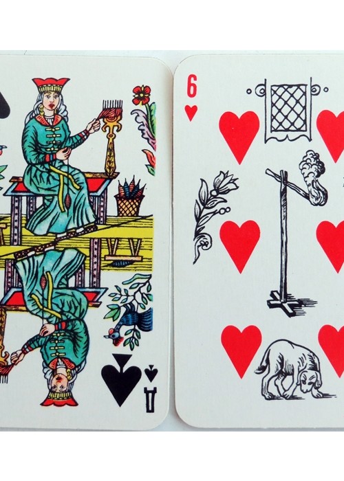 36 Patience-sized Fairy Tale cards. Vignettes on all pips. First published in 1981.