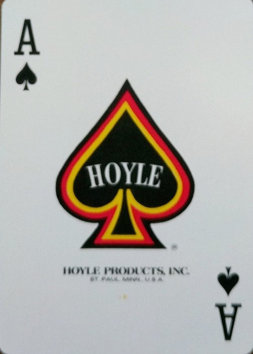 From the St. Paul Hoyle era, these cards were sold unboxed and wrapped in cellophane. The style of bicycle and wardrobe, the St. Paul Hoyle designation, and the existence of a similar deck with a woman on a skateboard would place the cards in the late 1970s – early 1980s.