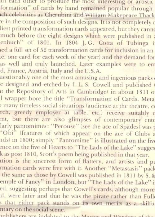 NOTE – this is a facsimilie of Cowell`s Transformation deck called Metatasis dated 1811 and should not be confused with S.J Fullers transformation deck with the same name and from the same period.