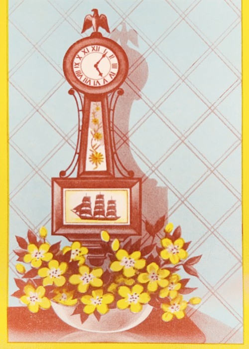1979 Wall Clock with Flowers Yellow